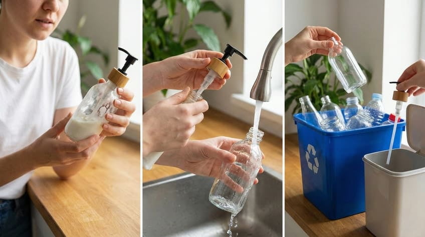 I advise clients and customers to give old lotion bottles1 a rinse (sometimes a spatula gets the last dollop out). Some brands or stores offer pump return programs6nson.com/en/news-stories/blog/reuse-spray-pump-better-than-recycling)2 return programs, which we encourage—offering true circularity7. At ECO-BAMBOO, we design for simple, tool-free disassembly, making it easier to prep containers for recycling or reuse.
