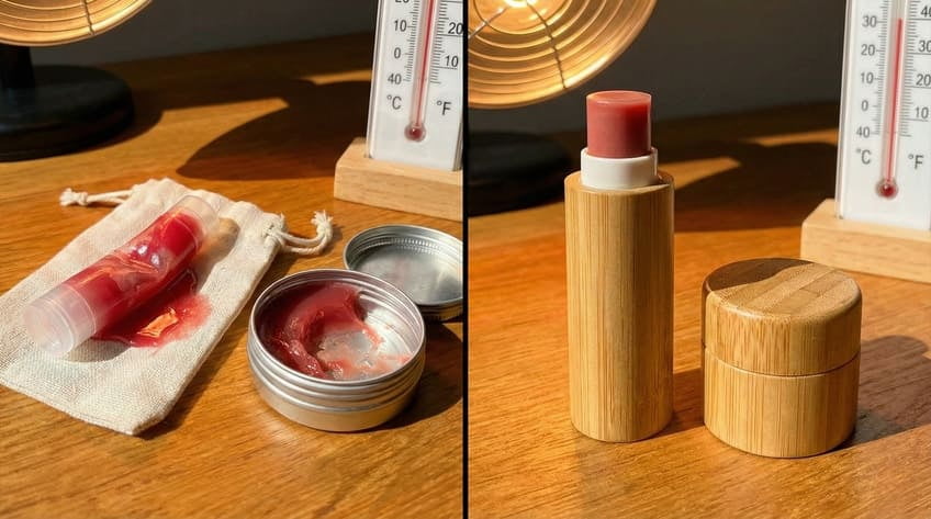 Lip balm melts at 35–40°C (95–104°F), so select bamboo or wooden tubes for insulation, and balance your formula with enough wax. For extra-hot regions, higher wax content2 and thicker packaging offer the best defense.
